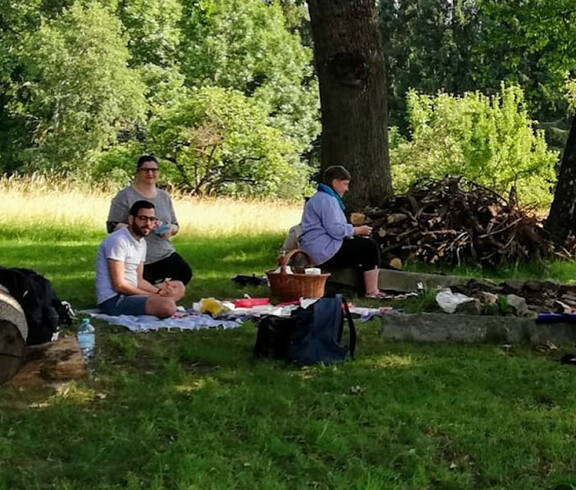 Sehr gemütlich startete kürzlich die Klasse 3D in den Tag. Die angehenden SozialbetreuerInnen nutzten das schöne Wetter und genossen gemeinsam mit ihrer Studienkoordinatorin Mag.a Ursula Robausch-Weichhart ein Frühstück unter freiem Himmel. Das schöne, weitläufige Schulgelände macht schließlich ein Picknick im Grünen möglich.