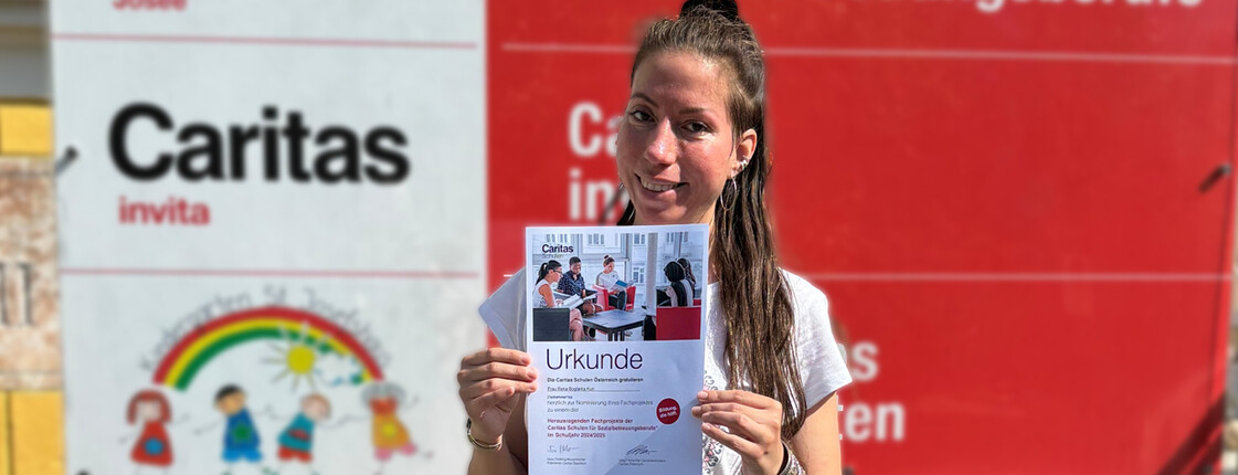 Réka Kun aus Bad Ischl, Absolventin der Caritas-Schule, setzte sich in ihrem Praktikum intensiv mit der Wirkung von gezielten Berührungen auf Menschen mit schwerer Behinderung auseinander. Die sichtbaren Erfolge bestätigten die 37-Jährige darin, ihre Berufung in der Sozialbetreuung gefunden zu haben.