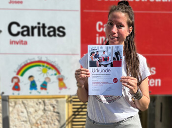 Doreen Anderl aus St. Veit begleitete in ihrer Ausbildung an der Caritas-Schule Andreas, einen jungen Mann mit Trisomie 21, auf dem Weg zu einer integrativen Beschäftigung im SPAR-Markt Oberneukirchen. Wer sich, wie die 34-Jährige, für einen sicheren Beruf mit Sinn interessiert, ist in der Sozialbetreuung genau richtig. Kommt zu den Infoabenden an unseren Schulen bzw online.